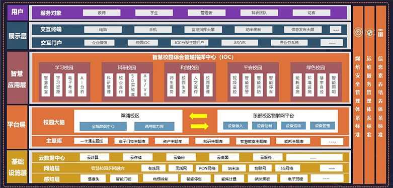 成人直播平台 成都东部(国际)校区智慧校园系统充分融合物联网、云计算、智能控制等先进技术,以智慧校园数字大脑为核心,搭建“有线网、无线网、物联网、5G网”融合互联的智慧平台,为师生构建因材施教的学习校园、创新引领的科技校园、安全有序的平安校园、自由开放的和谐校园、高效节能的绿色校园等五大智慧校园,提升校园智慧治理能级和运营效率,实现东部校区智能化、信息化、精细化管理。