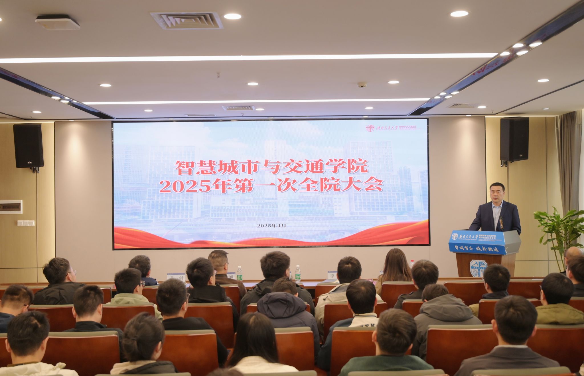 在X30820召开2025年第一次全院教职工大会。会议系统总结学院2024年办学成果,深入分析当下形势,明确部署2025年学院重点任务。校长助理、院长崔凯,党委书记李涛,党委副书记夏夏,副院长姬晓旭、马剑及全院教职工参会。会议由李涛主持。