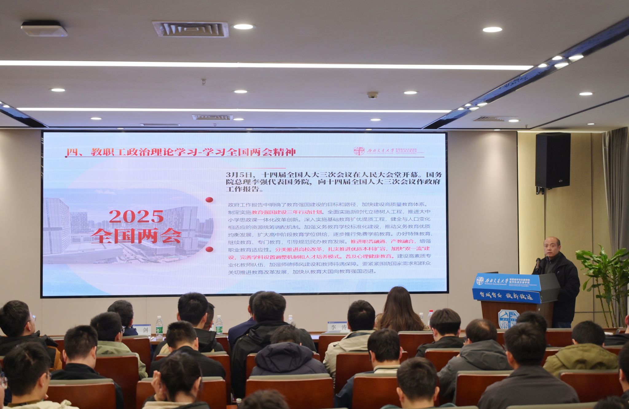 会议最后,学院开展教职工政治理论学习。李涛领学全国两会精神、学校2025年全面从严治党工作要点、贯彻中央八项规定精神学习教育精神、科研诚信与保密工作。