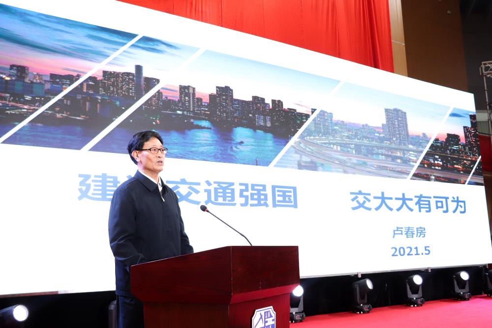 卢春房作“建设交通强国,交大大有可为”主题报告。他表示建设交通强国是以习近平同志为核心的党中央立足国情、着眼全局、面向未来做出的重大战略决策,是赋予中国交通运输业的崇高使命。他认为,西南交大在交通强国建设中有优势、有作为:西南交大在交通运输方面优势明显,一是对交通运输感情深厚,二是交通运输专业特色突出,三是交通运输人才济济,四是科研手段和科研成果丰富;西南交大在交通强国建设中必将大有可为,一是在高铁智能、绿色、更高速度研究方面大有可为;二是在交通基础设施工程建造基础理论和技术创新方面大有可为;三是在铁路牵引动力技术等创新方面大有可为;四是在交通人才培养方面大有可为。最后,卢春房衷心祝愿母校的明天会更好。