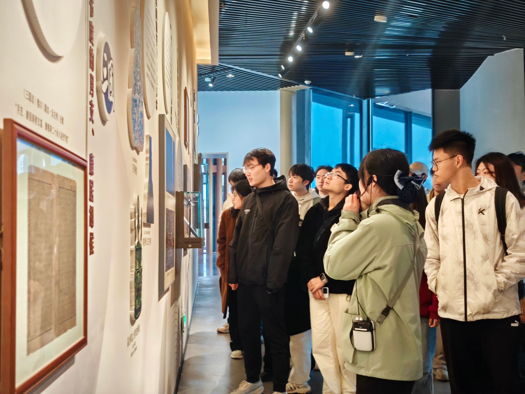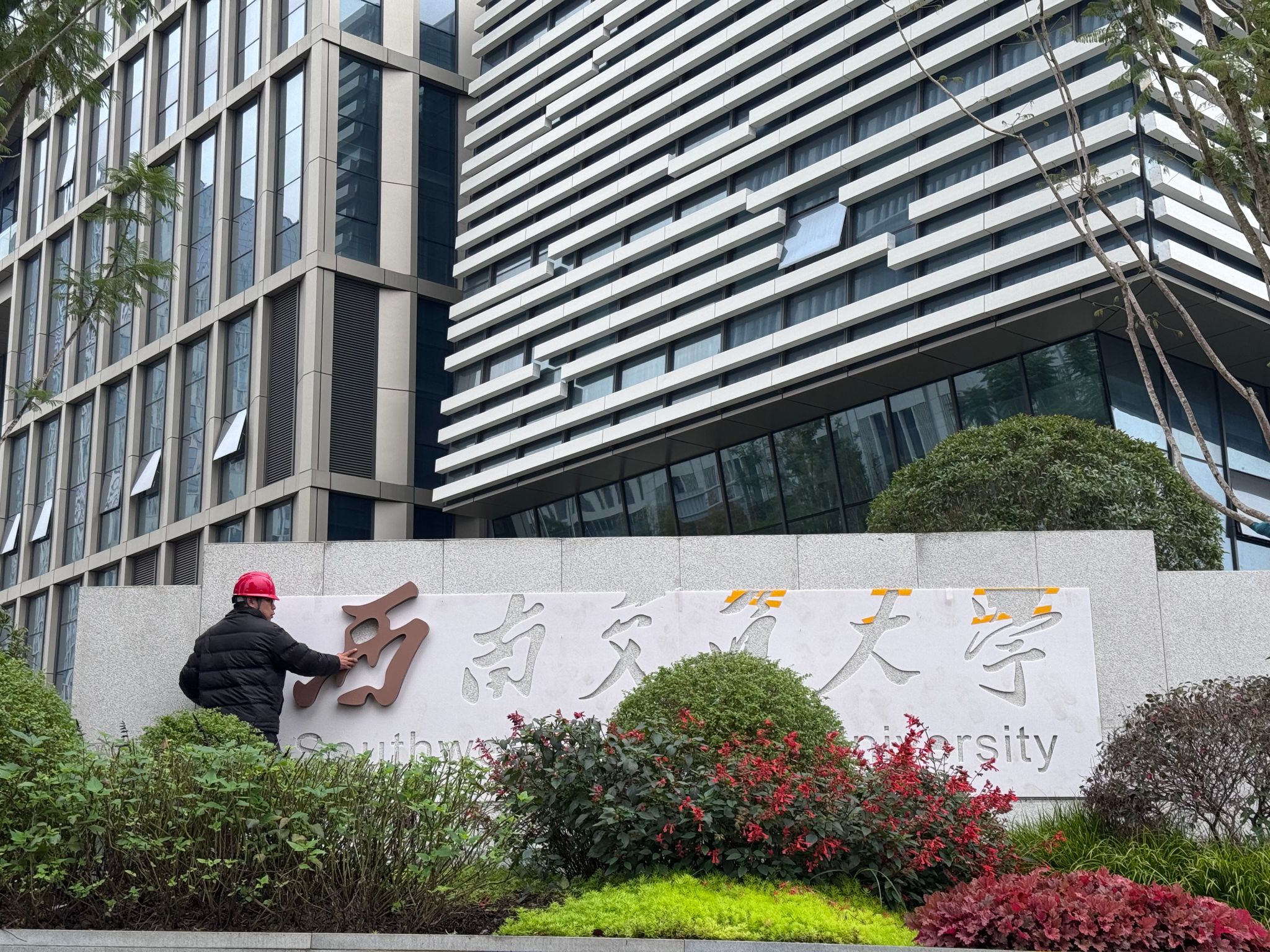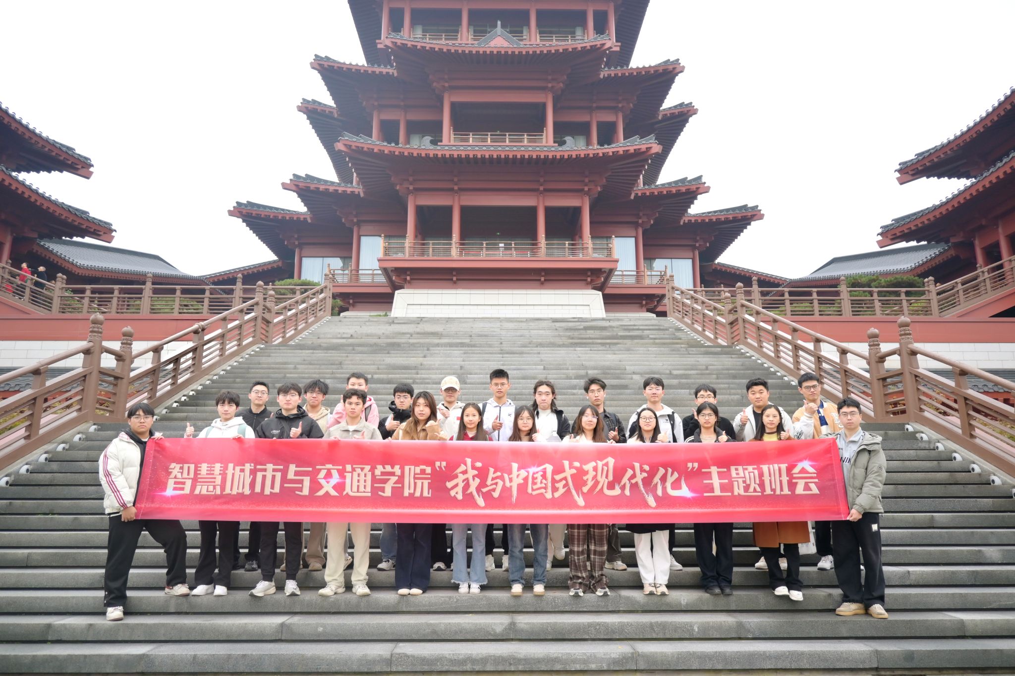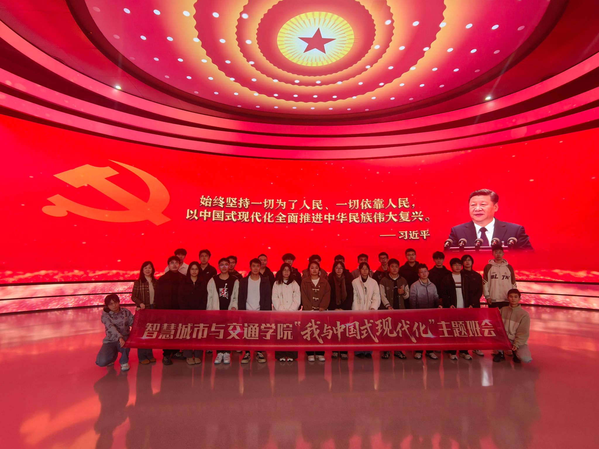 东部(国际)校区,这座“没有围墙的大学”以空中连廊将教学区、运动场、地铁站与商业体紧密相连,真正实现了“走出教室,即入城市”的开放理念。在全新启用的智慧教室,我们开展了“我与中国式现代化”主题班会,窗明几净的现代化教学空间,与青年学子蓬勃的理想在此交汇,联结起校园与城市、理论与现实,让我们真切感受到中国式现代化不是遥远的命题,而是融入学习生活、驱动青年担当的鲜活力量。我们还有幸见证了主楼校名墙安装的历史时刻,这一时刻承载着新校区面向未来的使命与担当。