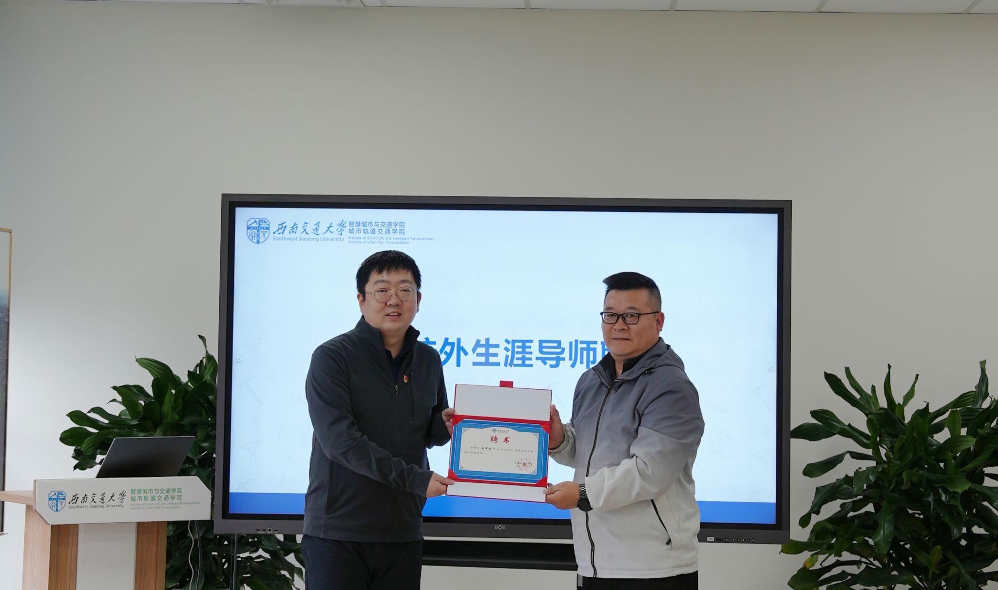 为进一步健全生涯教育体系,搭建院企协同育人平台,学院特聘请田中兴总经理担任校外生涯导师,提升学生职业规划能力和就业竞争力。