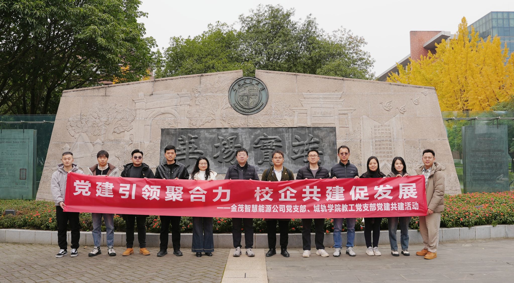 活动伊始,成都金茂智慧能源科技有限公司党支部和学院教工党支部党员一同参观校园,在百卅校史中进一步深化党建共建实效。