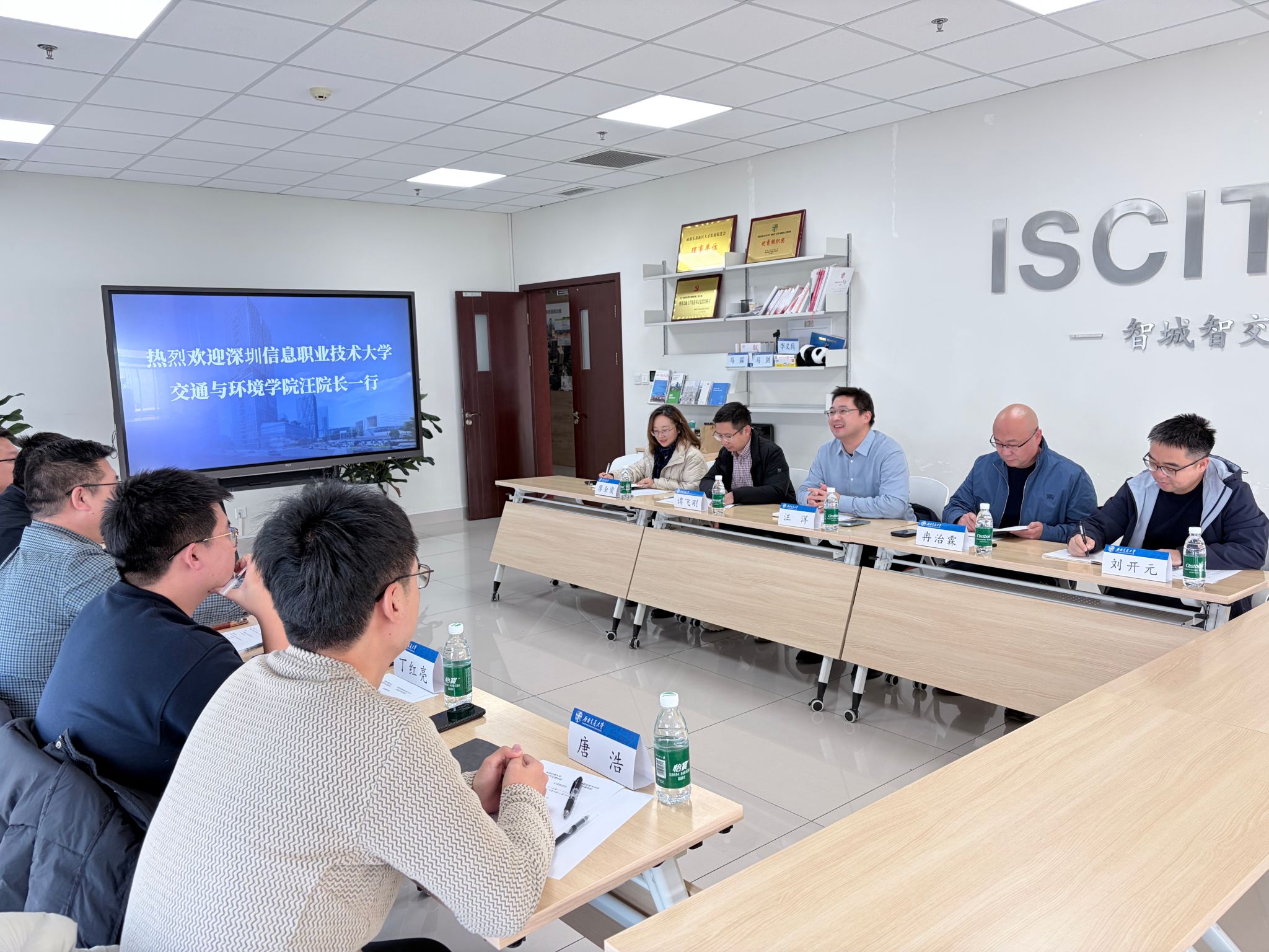 2025 年 12 月 15 日,深圳信息职业技术大学交通与环境学院院长汪洋一行到访学院开展调研交流。学院副院长姬晓旭、学生支持办公室主任任福及专业教师丁红亮、唐浩、宋怀博出席会议。