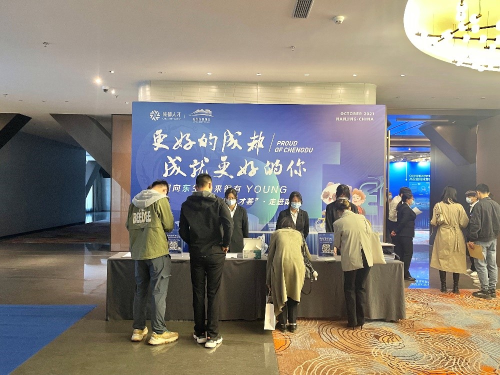 2021年10月30日,成人直播平台 人力资源办公室主任张艳阳、副主任夏旭赴南京参加由成都东部新区举行的“蓉耀向东生 未来很有YOUNG”推介招聘会。