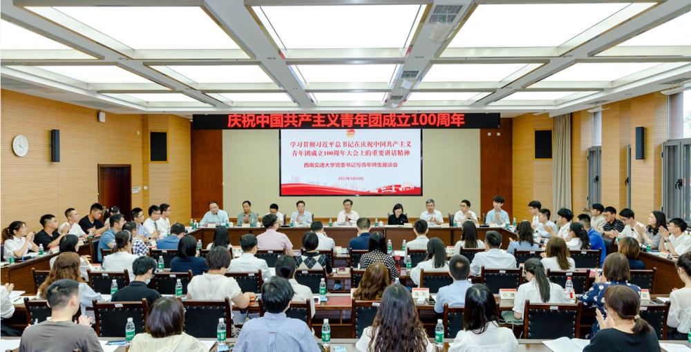 举行青年座谈会,校党委书记王顺洪、校党委副书记杨爱华与青年师生代表座谈,认真学习贯彻习近平总书记在庆祝中国共产主义青年团成立100周年大会上的重要讲话精神。