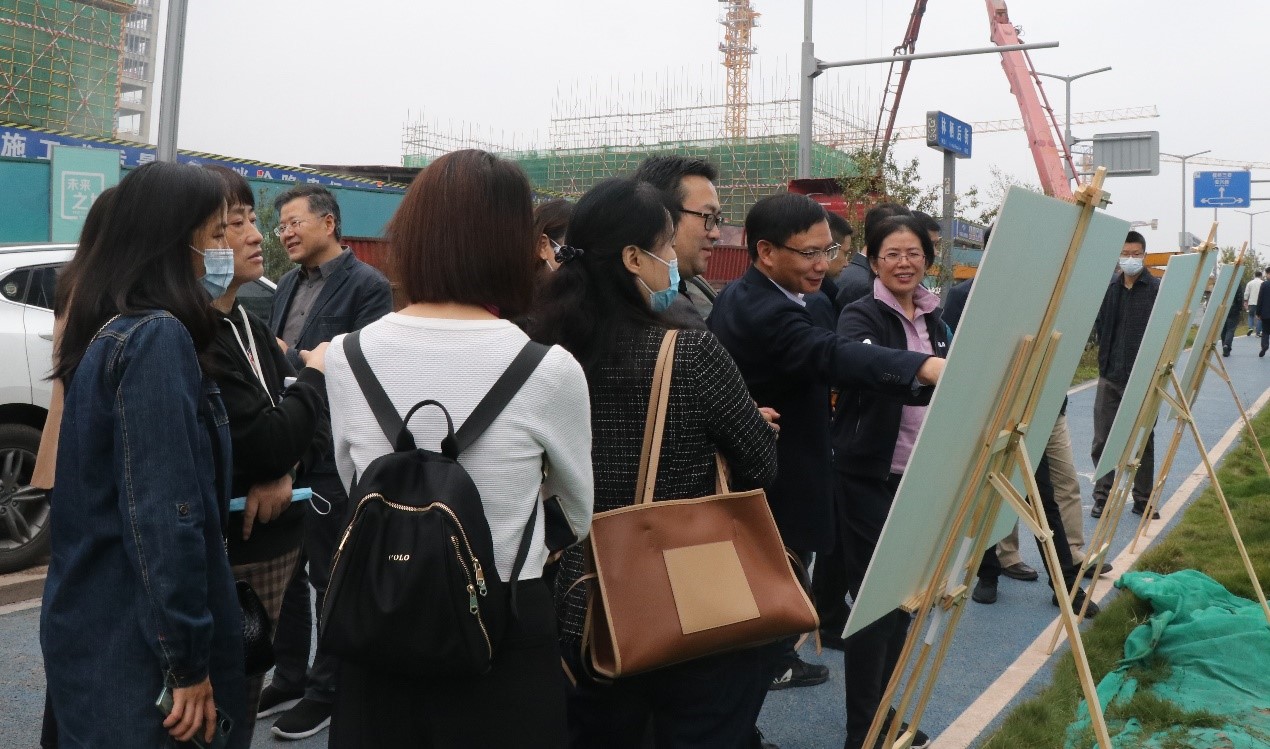 随后,全体学员参观了东部(国际)校区建设现场。学院师生在现场多个点位摆放展板,向学员们详细介绍东部(国际)校区所处方位、总体布局、功能分区等情况,并解答学员们的疑问。