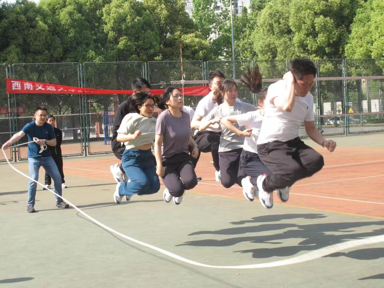 集体项目赛场上,老师们齐心协力,闪转腾挪间,体现最默契的配合;携手共进时,展现最坚定的信任。