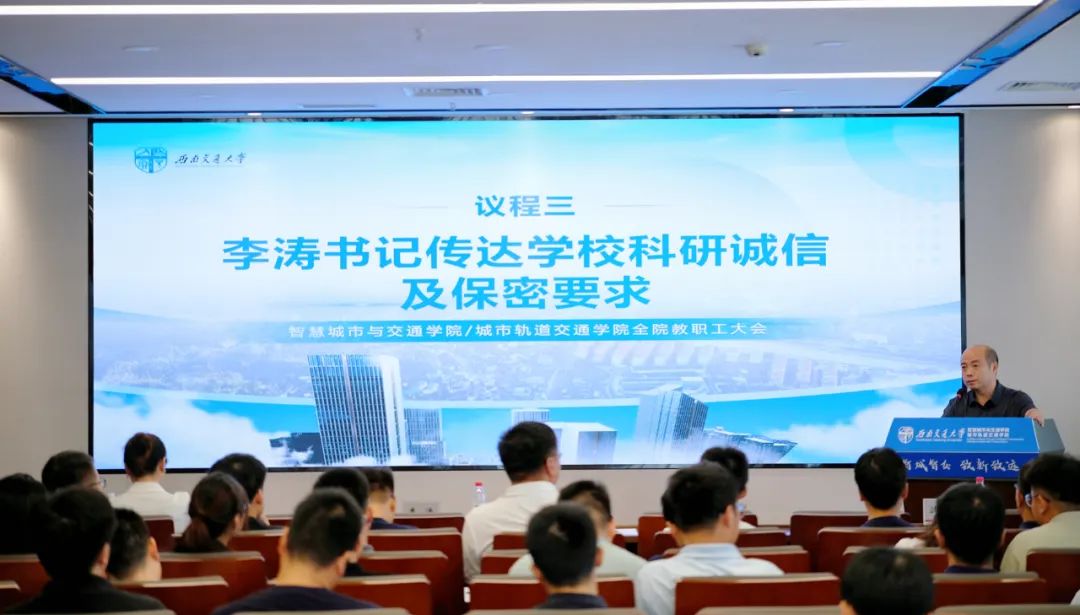 李涛传达学校科研诚信及保密要求。李涛围绕失信案例分析、保密工作警示教育、校内管理举措等三个方面进行了深入讲解,他强调要旗帜鲜明划好“红线”与“底线”,筑牢思想根基,将相关要求内化于心、外化于行。