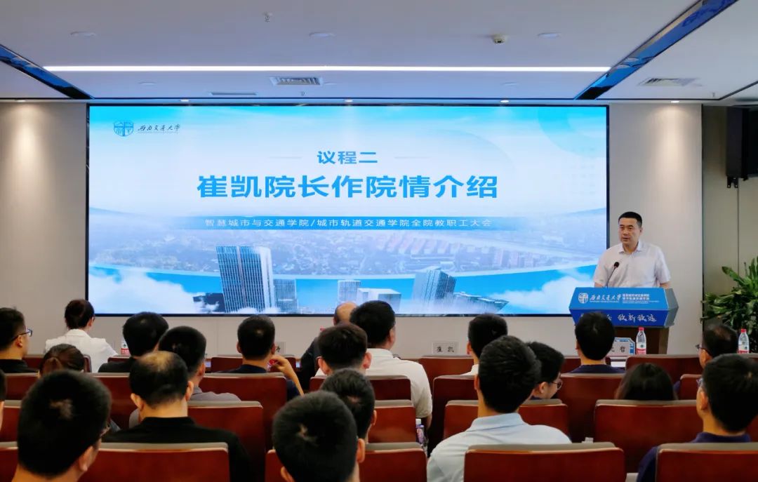 崔凯作校区建设和学院发展专题报告。崔凯从学院四年里的发展和变化入手,详细介绍了东部(国际)校区作为“国际化人才培养特区”的办学新样态和建设历程,进一步明确学院定位和发展方向。崔凯从人才培养、教学管理和学生管理三大方面对全体教职工提出了要求和期望,并强调要持续探索创新实践人才的自主培养之路,打造“产科教一体化的新工科国际化人才培养”新范式。