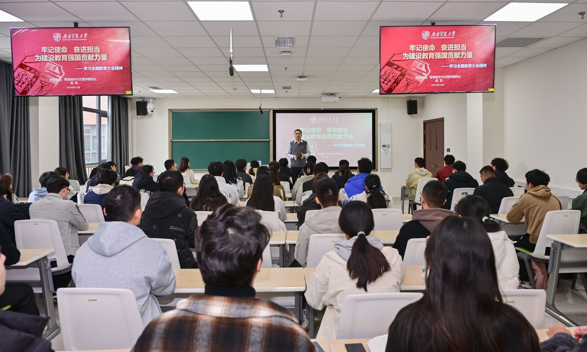 崔凯以《牢记使命 奋进担当——为建设教育强国贡献力量》为题,从全国教育大会重要性、体悟全国教育大会精神、扛起强国建设责任重担三个方面进行了详细阐述。