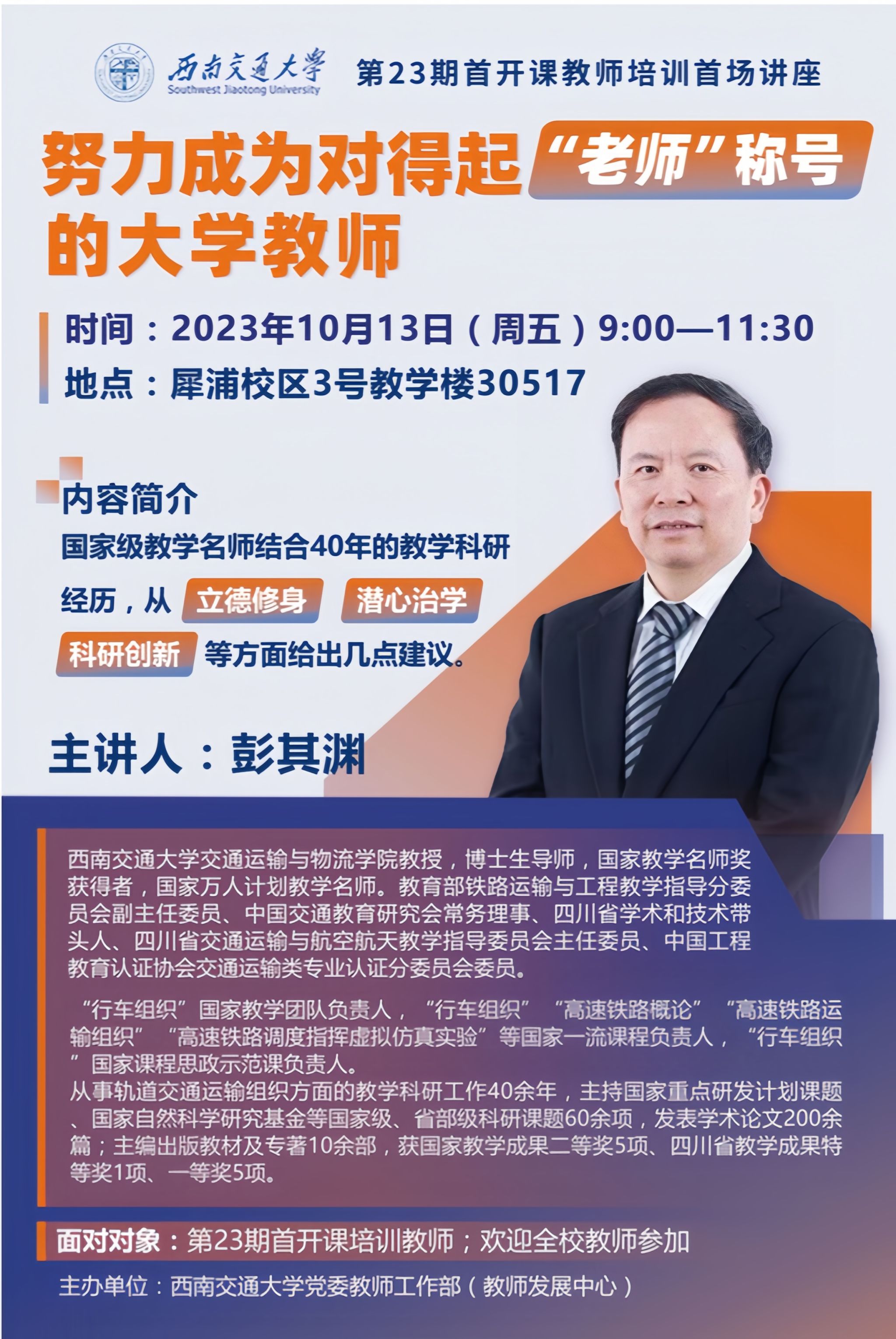 面向对象:第23期首开课培训教师;欢迎全校教师参加