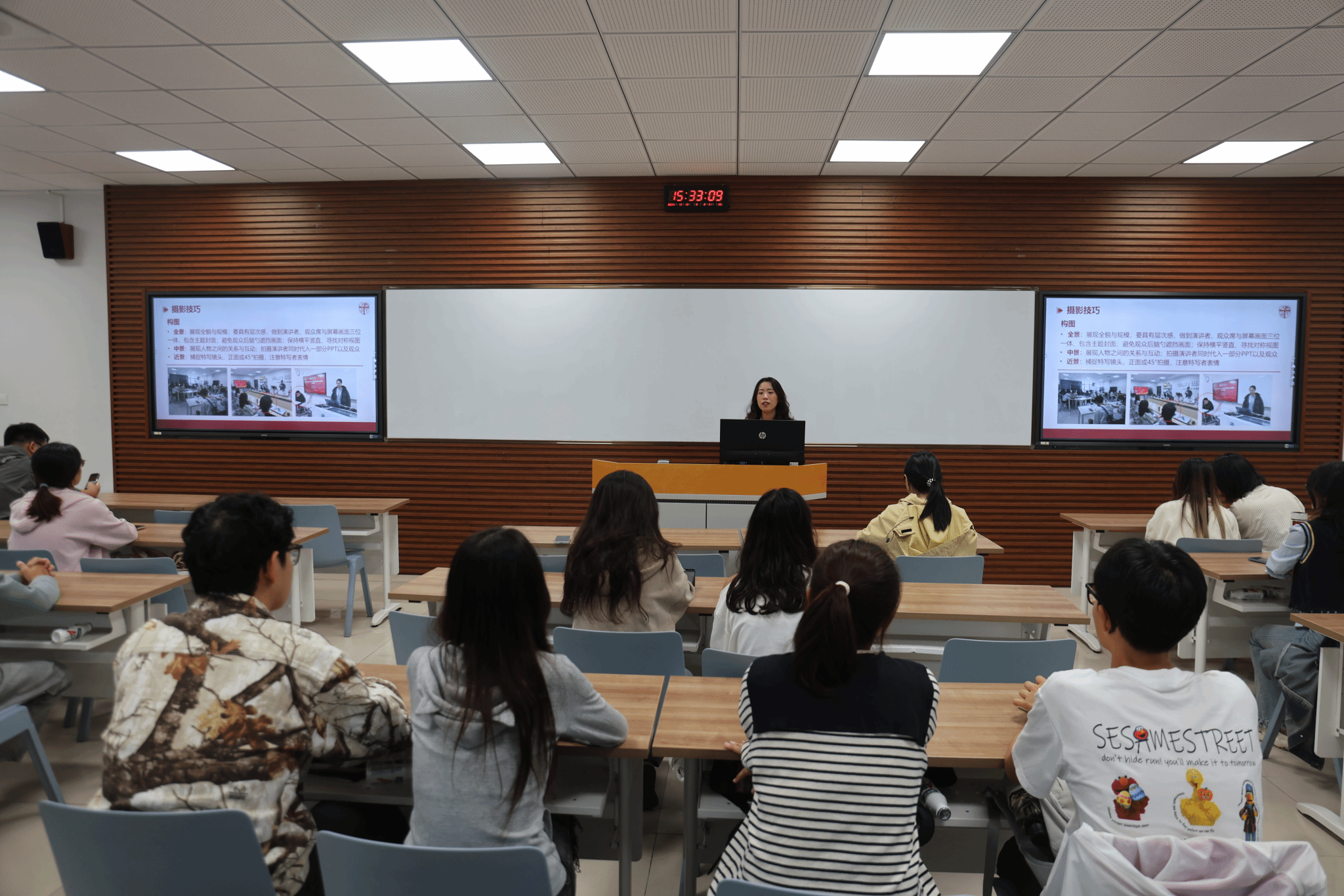 学生会于10月12日在X1201组织开展新闻活动摄影技巧培训大会,本次培训由学院学生会指导老师魏岚主讲,学生会全体成员参与学习。