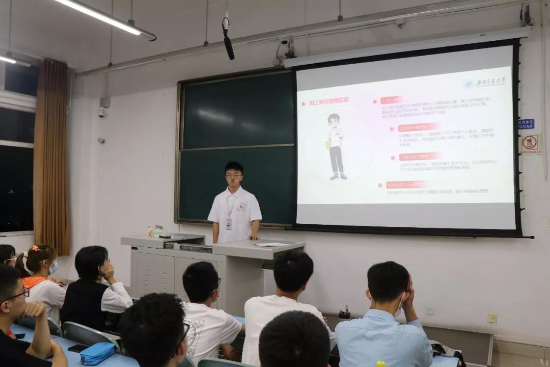 继往开来,文化美心。为使新生了解学校办学历史、办学优势和人才培养特色,知悉学院建设历程、发展情况和未来愿景,2021年9月4日,学院邀请学校大使团大使带领新生游园、参观校史馆,为新生讲解学校历史和交大精神让新生尽快熟悉交大校园,感悟校史底蕴,培育爱校情怀;2021年9月5日,学院院长何正友教授为学院全体新生作院情院景专题讲座,增强了新生对学校、学院的认同感、自豪感和归属感,引导新生树立远大目标,热爱学校,努力成才。