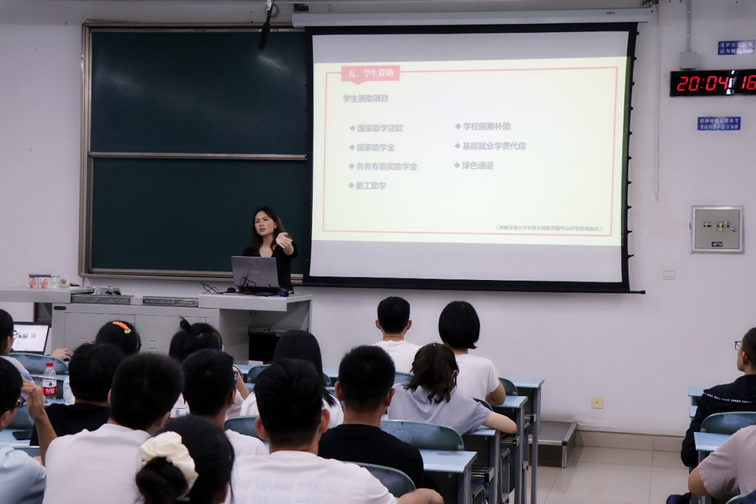 暖心扶困,资助弘志。为使新生全面了解高校学生资助政策和我校资助体系与特点,切实消除家庭经济困难学生的后顾之忧,2021年9月8日,学院邀请了交大“小资小助宣讲团”的“学生资助宣传大使”前往学院开展宣讲,激励新生强化主体意识和责任意识,志存高远,逆境拼搏,奋发成才,自强不息。