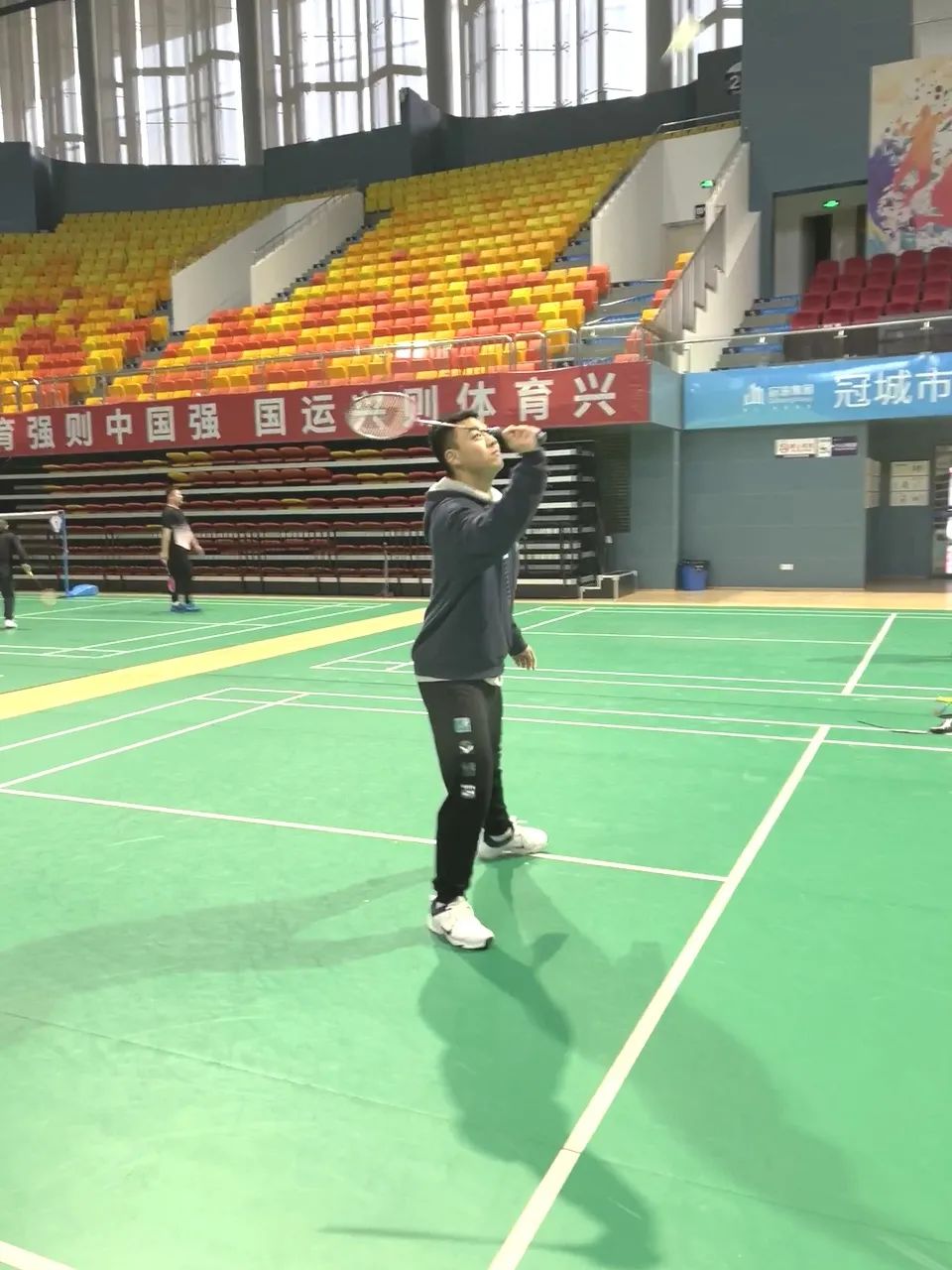 在午后与同学相约去市体育馆打羽毛球