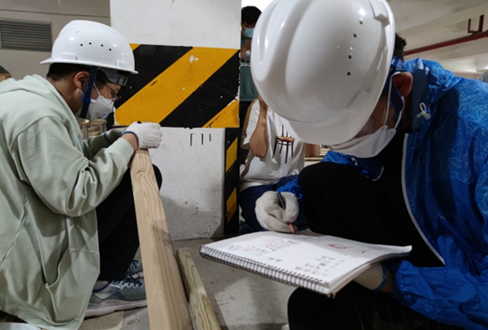 在设计和搭建过程中,全体成员注重安全防护,工作过程中严格按照要求戴好安全帽。