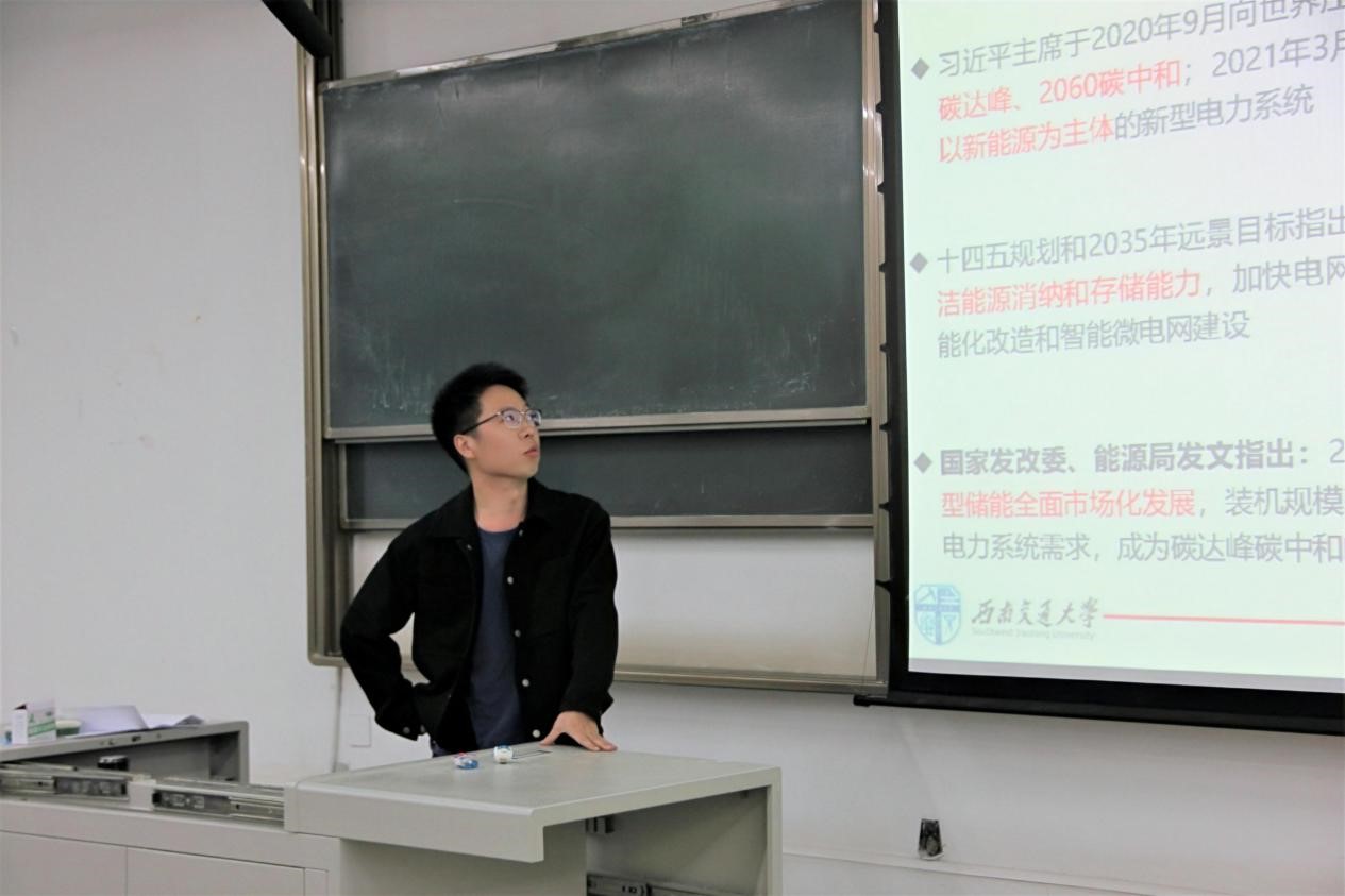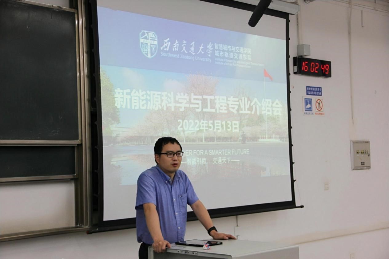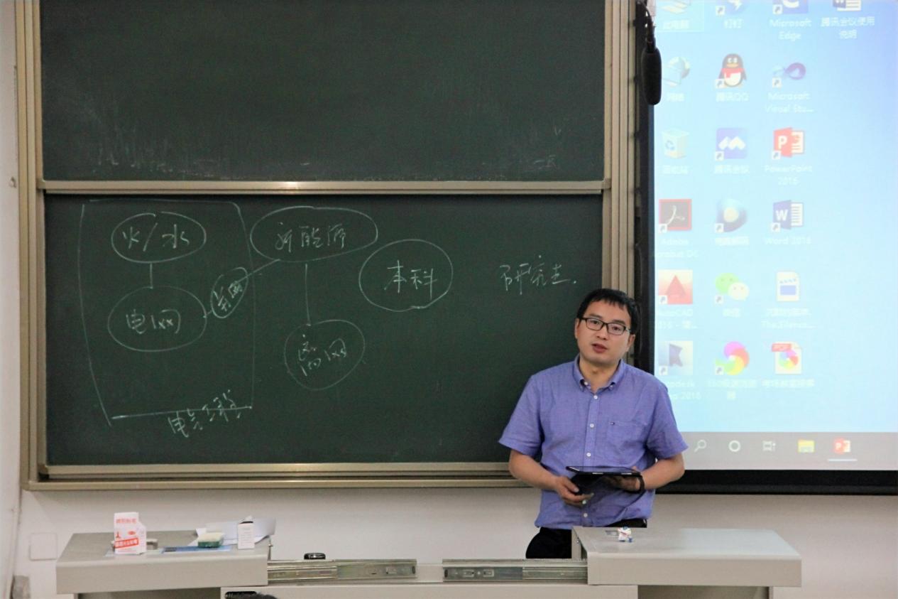 5月13日下午,新能源科学与工程(以下简称新能源)专业介绍会于X2316教室举行。电气工程学院副院长、新能源专业负责人、学院2021级新能源二班导师胡海涛,2021级新能源二班导师张晓平,学院新能源专业新教师陶宏伟、李义兵、赵朝阳参会。会议由学院2021级新能源专业辅导员宋治东主持。