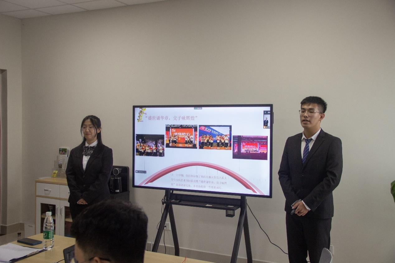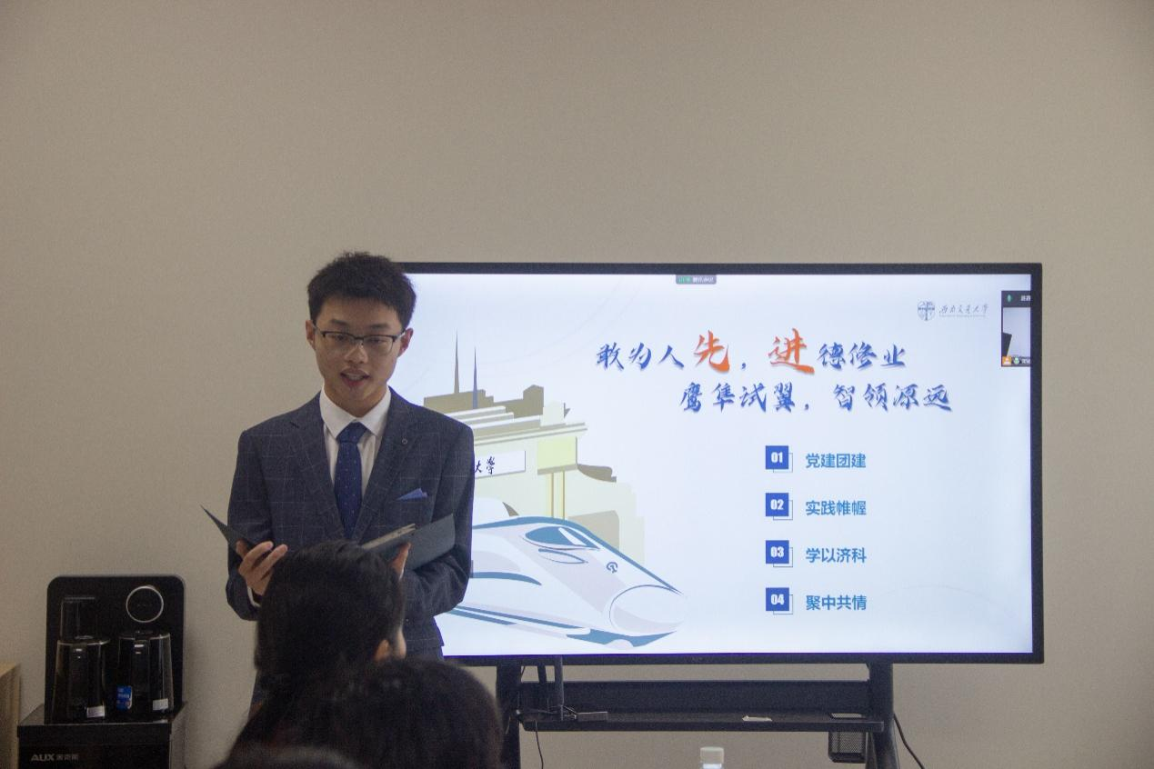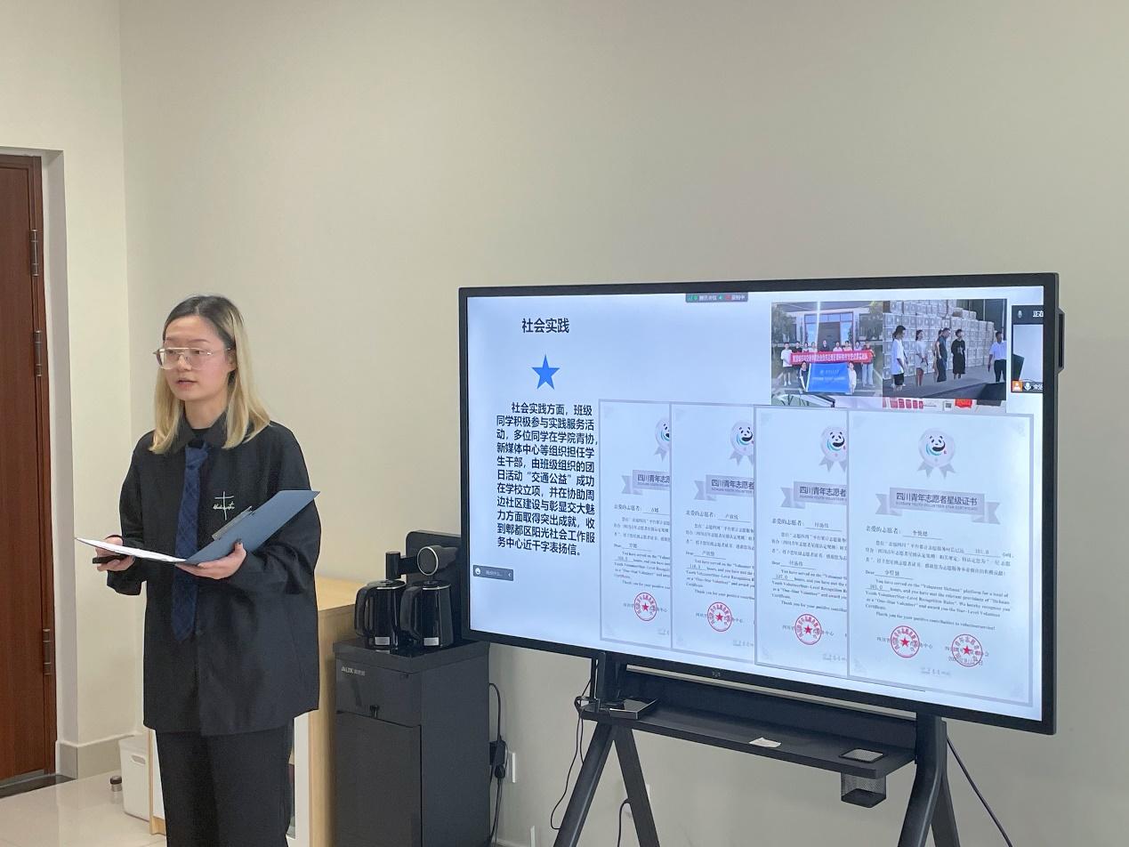 为加强学院班风、学风建设,充分发挥优秀班级的示范引领作用,10月13日下午,学院在X31601举行2021级本科生班级风采展示答辩会。学院党委副书记罗妍妍、学生管理办公室主任夏夏、团委书记于博伦和各年级辅导员老师作为评委参与评审,2021级11个班级进行了答辩展示,各年级学生线上观摩。