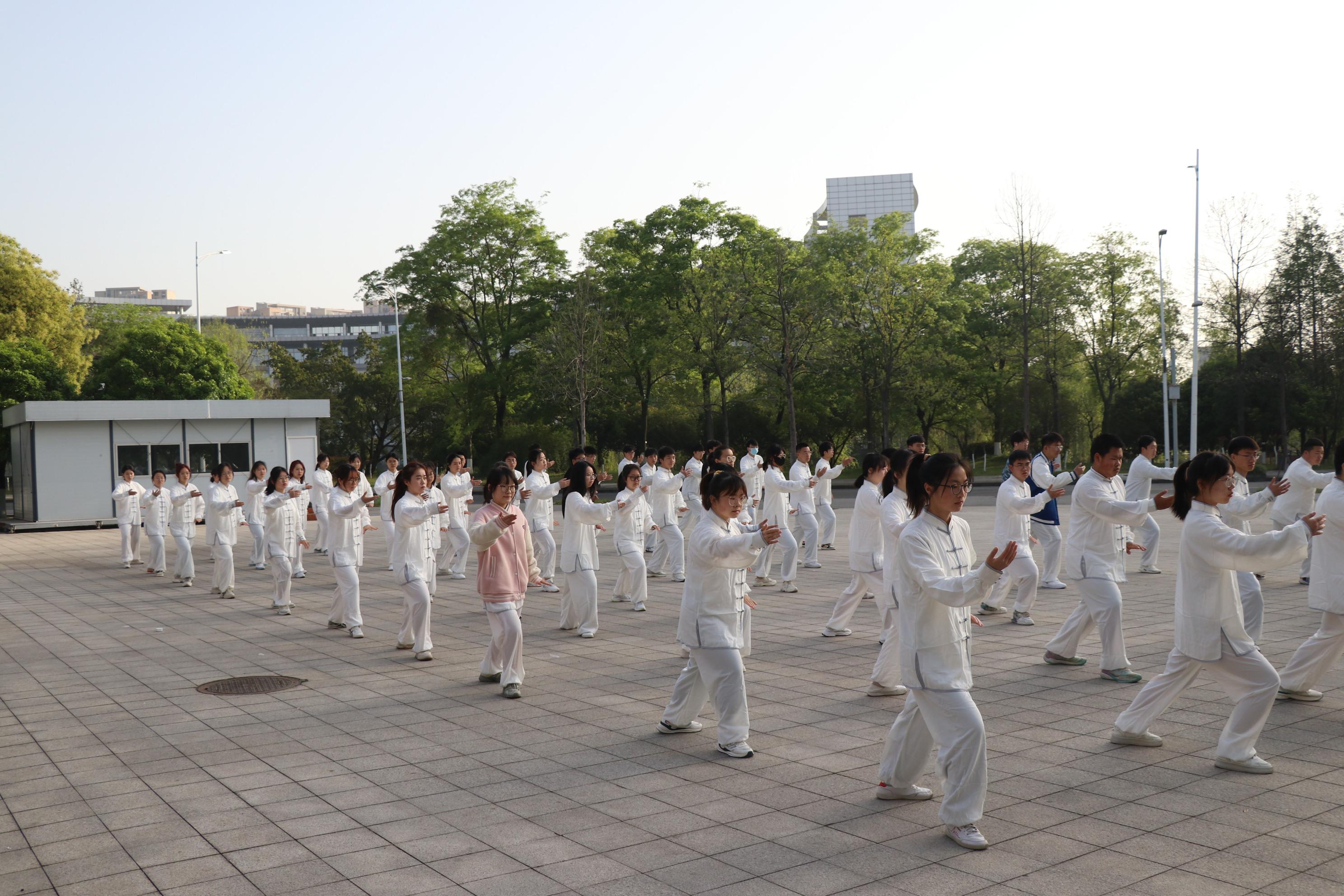 为备战本次比赛,同学们每周风雨无阻地准时集合认真练习,在每一次训练中深刻感受、体验、理解太极之美。