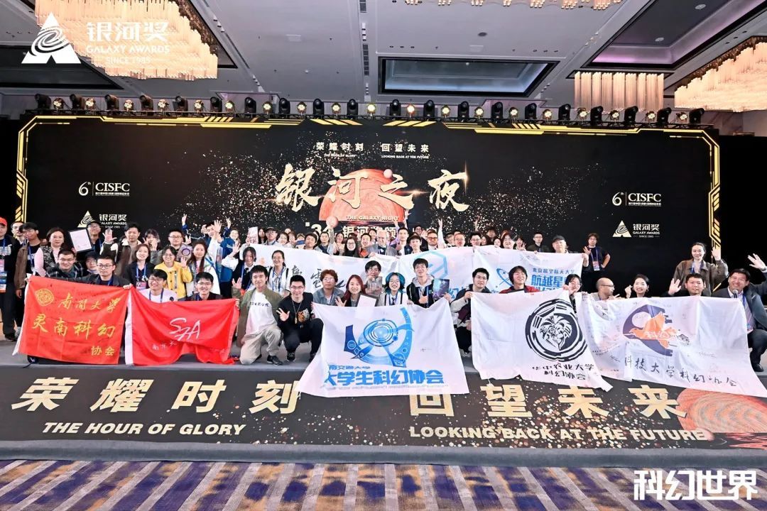 银河奖由科幻世界杂志社创办于1985年,以“银河”为名,取其“群星会聚”之意,旨在助力中国科幻写作从稚嫩走向成熟,是中国历史最悠久的科幻奖项,也是公认的中国科幻最高奖。其中最佳科幻团体奖在2017年第28届“银河奖”颁奖典礼上首次颁发,自银河奖最佳科幻团体奖申报开始,学校科幻协会踊跃参与、积极筹备、重点组织,最终以优越的社团成果分别于2020年和2023年获得第31届和34届银河奖“最佳科幻团体奖”的殊荣。