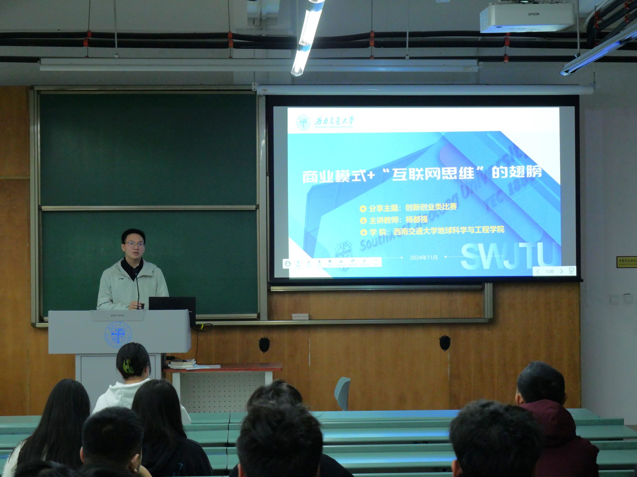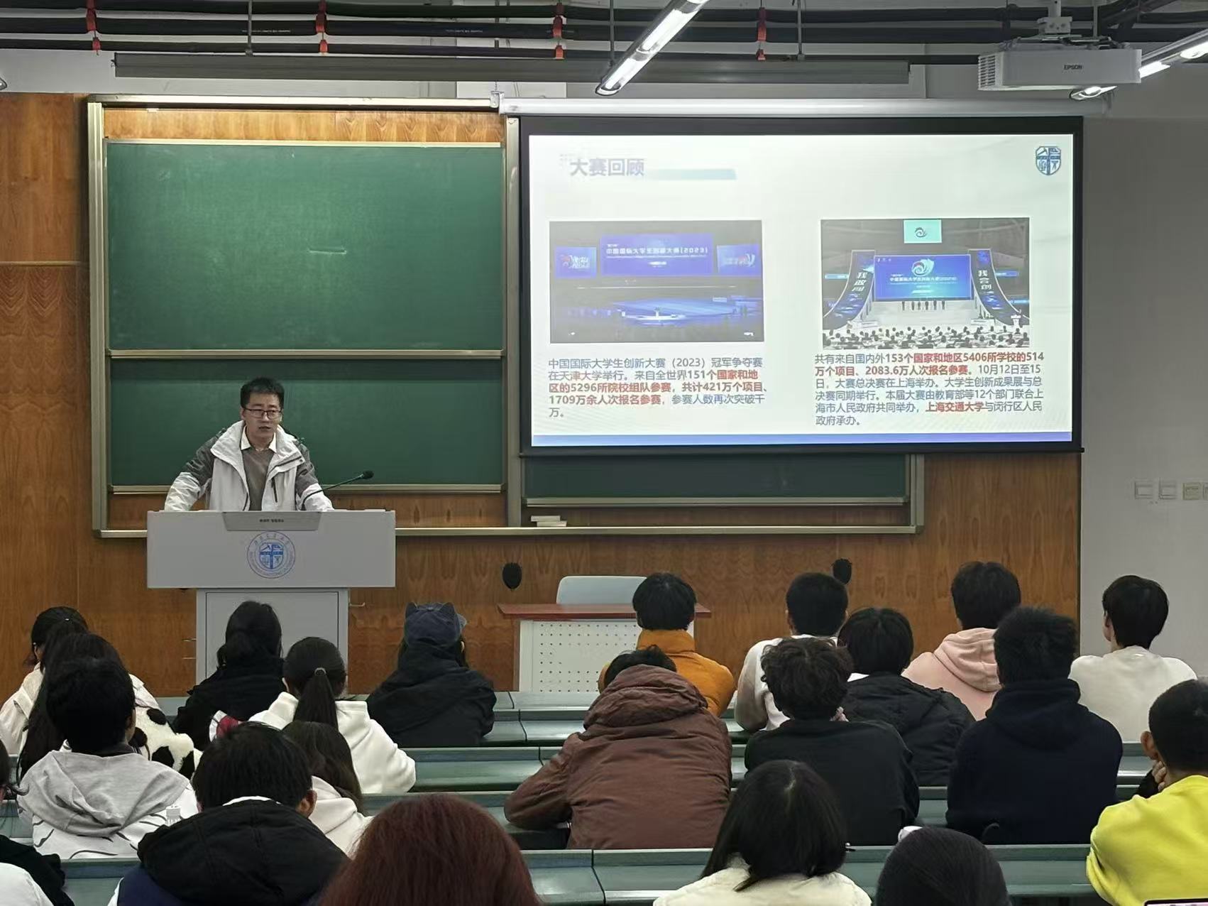 中国国际大学生创新大赛主题讲座由谢东旭老师主讲。谢老师深入解析了大赛的背景与实际应用,详细讲解了赛事流程、奖项设置以及参赛要求,为同学们介绍了不同赛道的特点与要求。同时,他通过回顾往届大赛的优秀成果,分享了宝贵的参赛经验,助力同学们积极备赛。