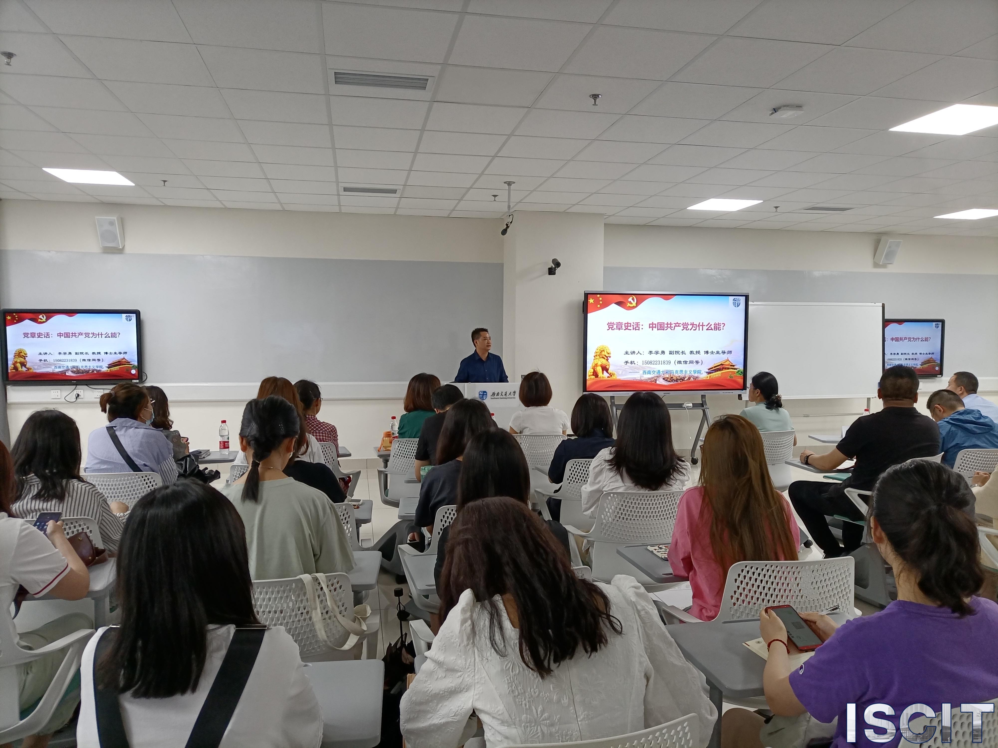 5月13日下午3点,在犀浦校区三号教学楼30517教室,成人直播平台 党史学习教育专项宣讲团成员、马克思主义学院副院长李学勇教授为大家带来了《党章史话:中国共产党为什么能?》的党史学习教育主题讲座。讲座由利兹学院党总支主办,成人直播平台 党委的同志们到场参加学习。