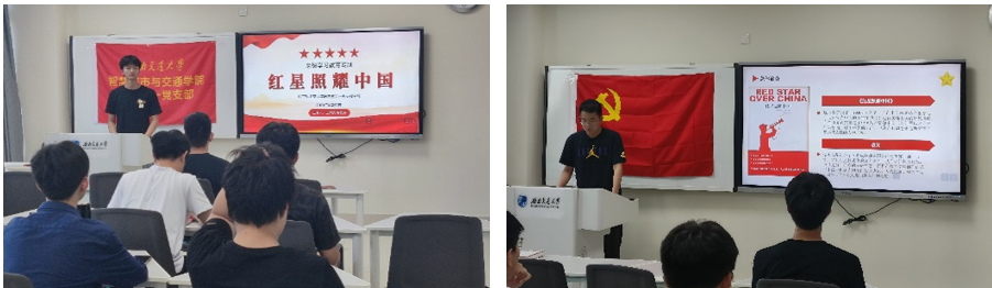 王宇航和唐世民两位同志指出《红星照耀中国》是对中国共产党在中国西北革命根据地艰苦奋斗和牺牲奉献事迹的真实记载。两位同志结合《红星照耀中国》的创作背景、主题思想、历史意义,带领学习书中对中国西北革命根据地的真实记载,深入分析和探究了“红色中国”产生、发展的原因,对中国共产党和中国革命做了客观的评价。