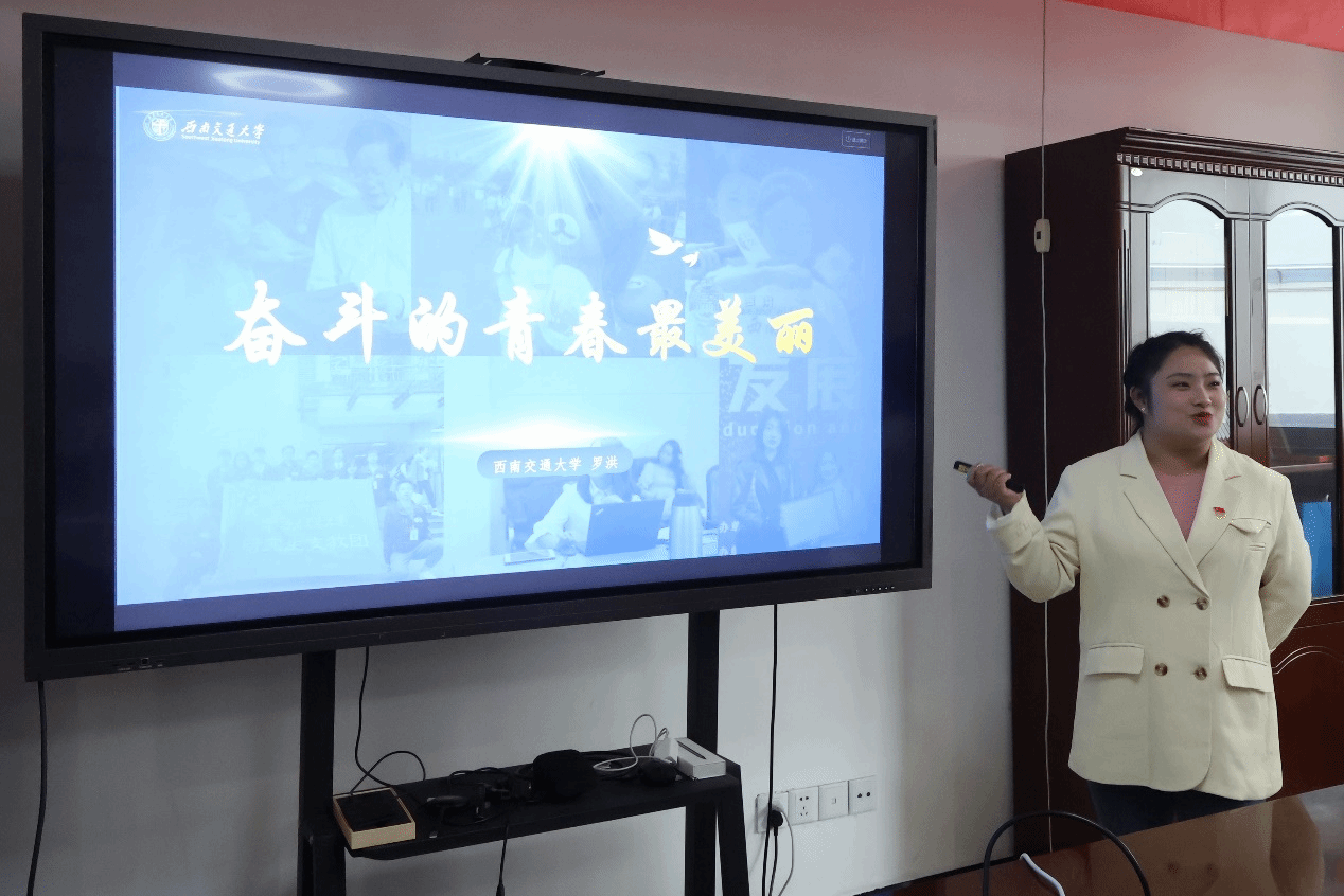 罗洪以“奋斗的青春最美丽”为题,分享了她在马尔康支教的难忘经历和深切感悟。她说,支教服务不仅仅是一种行动,更是一种精神追求。她进一步鼓励同志们积极参与志愿服务,把小我融入大我,怀抱梦想又脚踏实地,敢想敢为又善作善成,努力书写爱党爱国、砥砺奋斗的青春篇章。