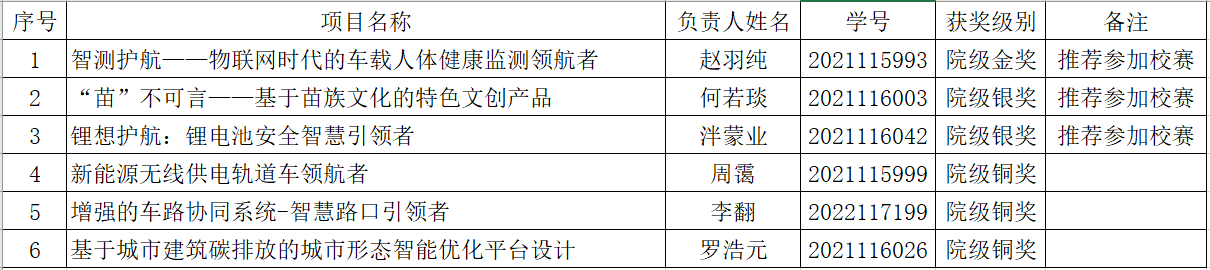 根据学校《关于启动2023年第九届中国国际“互联网+”大学生创新创业大赛校内选拔赛的通知》要求,经项目组自愿报名,指导老师审核,学院组织开展院级选拔,最终确定学院获奖名单,特此公示,同时公示推荐至学校参加校赛的项目,公示期:6月24日至6月26日。公示期对比赛结果及推荐参加校赛项目有异议者,以书面形式反映至学院人才培养办公室,办公地点:犀浦校区3号教学楼31626,恕不接受匿名及其他方式。