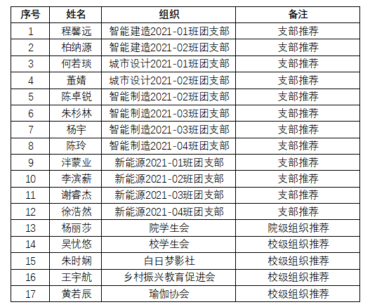 注:“十佳”团支部书记参评推荐人选从优秀共青团干部申报人选中产生,若学院所推荐候选人未评选上校级“十佳”团支部书记荣誉,将默认参评“优秀共青团干部”。