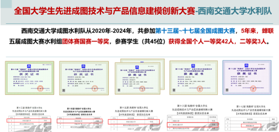 水利队连续参加了第十三至十七届先进成图大赛,成绩如下: